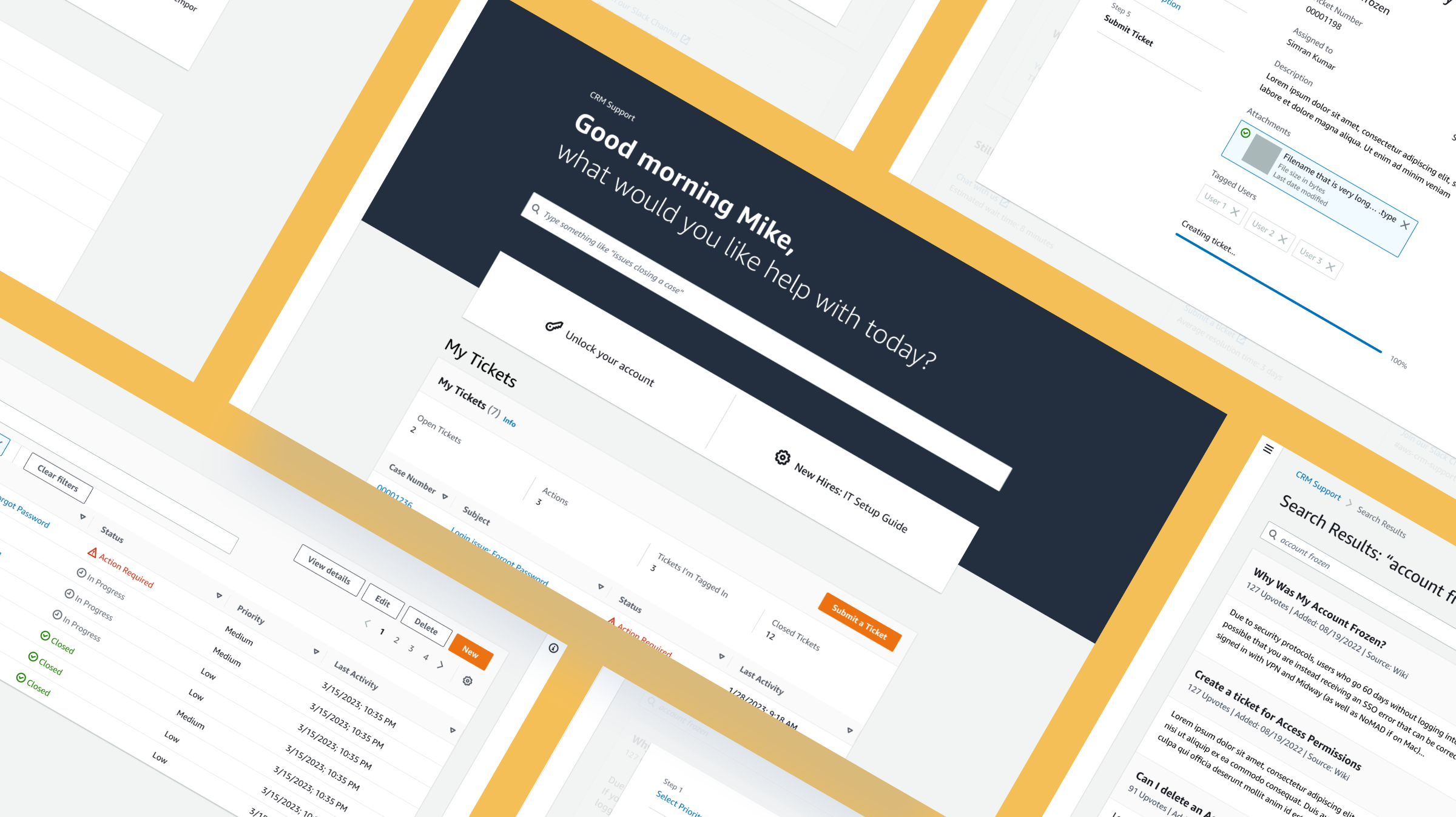 Redesign the CRM Support landing page using Salesforce Experience Cloud to anticipate common user needs, clearly organizing and displaying knowledge resources and articles. Encourage users to find information proactively in order to cut down on tickets submitted.